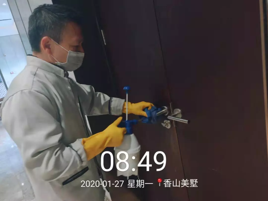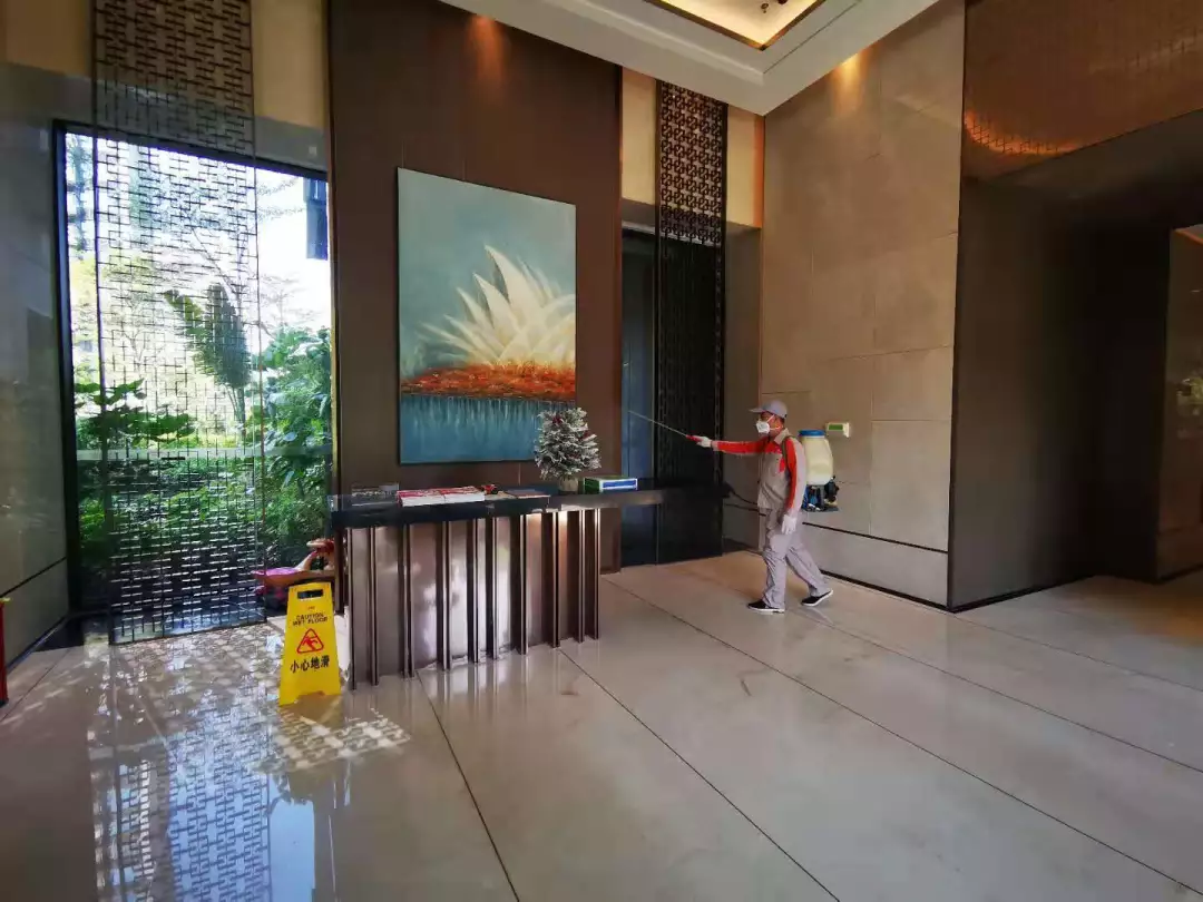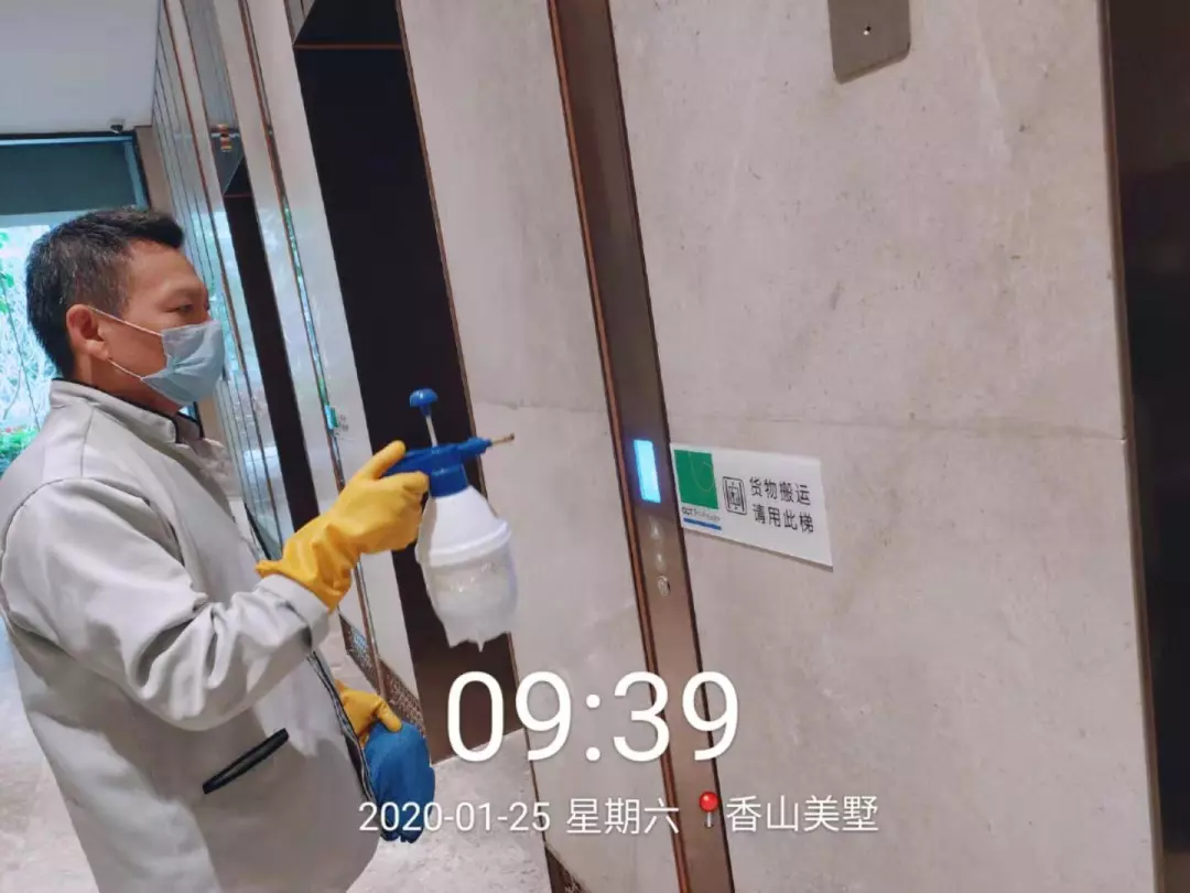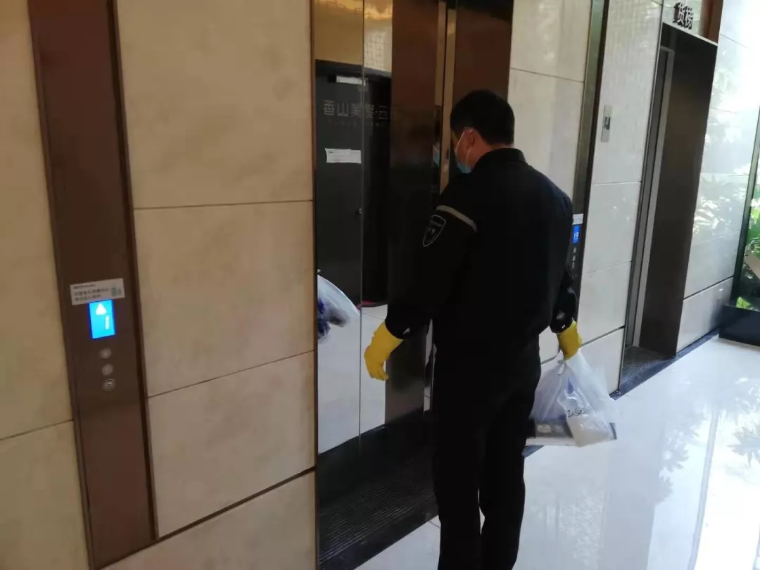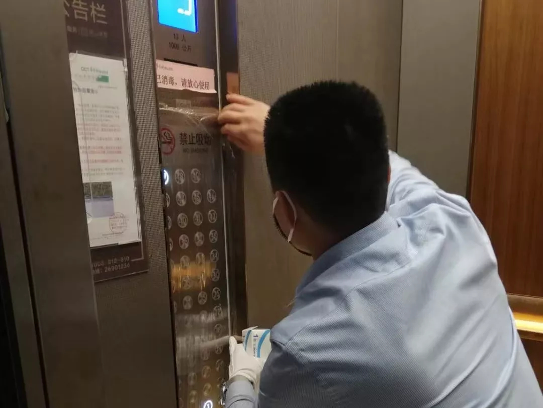每天對(duì)小區(qū)公共區(qū)域大堂門把手、門禁對(duì)講機(jī)、電梯按鍵、大堂茶幾沙發(fā)等高頻接觸區(qū)進(jìn)行消毒及對(duì)轎廂按鈕定時(shí)更換保鮮貼膜。