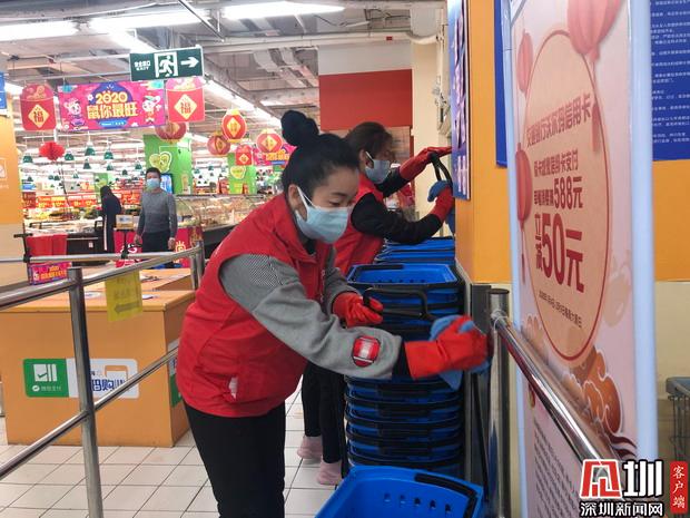 “其實家里人知道后也不贊成我們這個時候來做志愿者,畢竟也有點擔心嘛”于文平對記者說:“我們作為一個小市民,對國家來說大的貢獻可能談不上,但是因為我喜歡深圳這座城市,所以我決定要出一份力,做一些力所能及的事,過年期間能讓大家吃上安心的食品,來購物的時候能用上消毒過的購物車、購物籃,我也覺得很開心。”