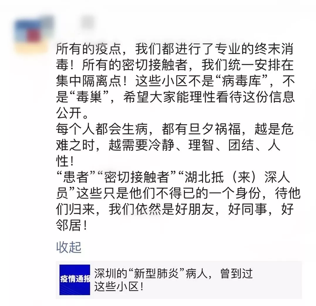根據(jù)國家衛(wèi)健委疾控局“以社區(qū)防控為主”、加強“群防群控”的通知精神,深圳于1月30日晚響應(yīng)市民的強烈呼聲,公布了第一批31個曾有“新型肺炎”病人逗留的小區(qū)(場所)名單。
