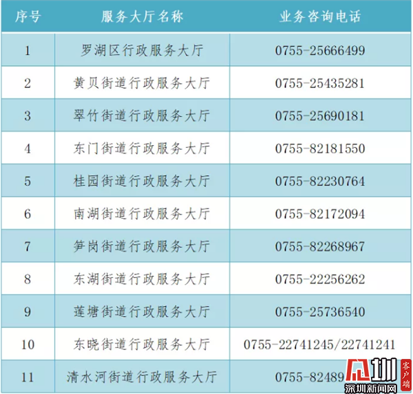 羅湖區(qū)、街道行政服務(wù)大廳咨詢電話