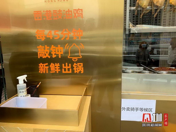 根據(jù)相關(guān)規(guī)定,兩家餐廳門(mén)口均設(shè)立預(yù)防區(qū)及外賣(mài)騎手區(qū),餐廳配備了體溫測(cè)試儀及消毒酒精,每位到店的顧客或騎手均需進(jìn)行體溫檢測(cè)及消毒,特別是金戈戈豉油雞餐廳更為市民配備了口罩。