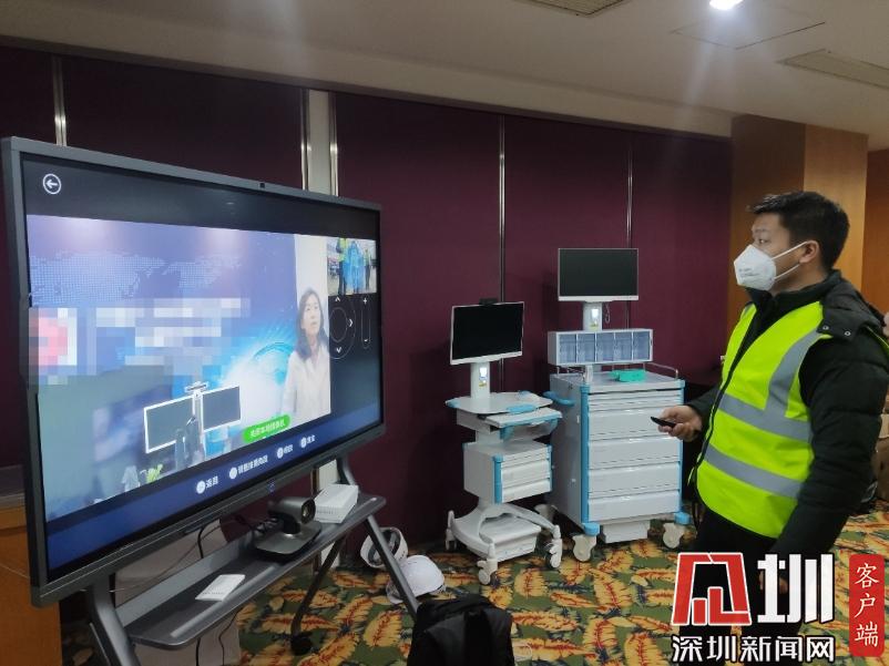 1月31日晚,經(jīng)過半天緊急協(xié)調(diào)和安裝,遠(yuǎn)程會診系統(tǒng)調(diào)通 (華為供圖)