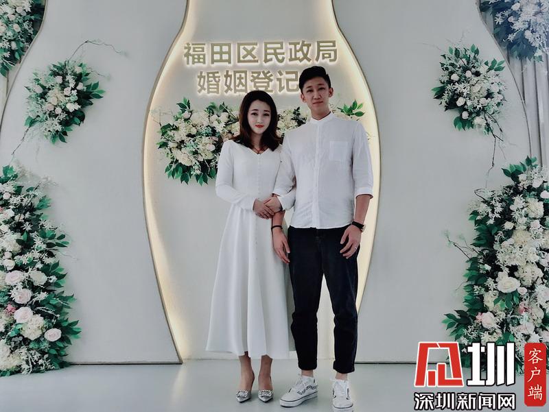 孟祥鳳和曹安在福田區(qū)民政局登記領結婚證。