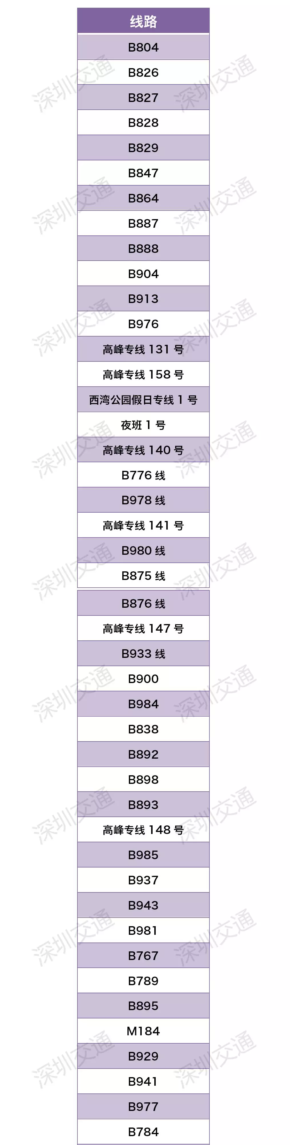 二、部分支線(xiàn)巴士、高峰線(xiàn)、夜班線(xiàn)、跨市運(yùn)行的公交線(xiàn)路暫停運(yùn)營(yíng)。