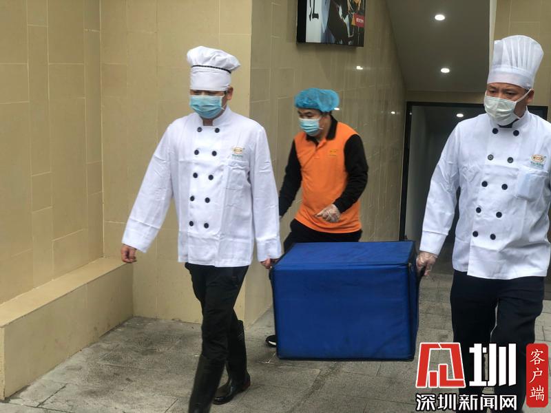 為新型冠狀病毒感染的肺炎疑似病人準(zhǔn)備的餐食到達(dá)深圳禾正醫(yī)院(深圳市新型冠狀病毒感染第二隔離區(qū))。