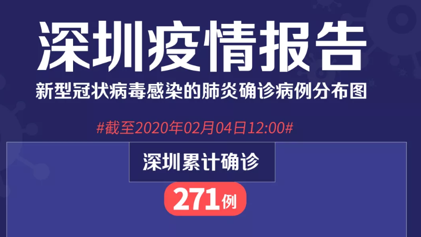 截至2月4日24時(shí),深圳累計(jì)報(bào)告新型冠狀病毒感染的肺炎確診病例289例。2月4日當(dāng)天全市新增確診病例20例(個(gè)案詳情今晚公布)。