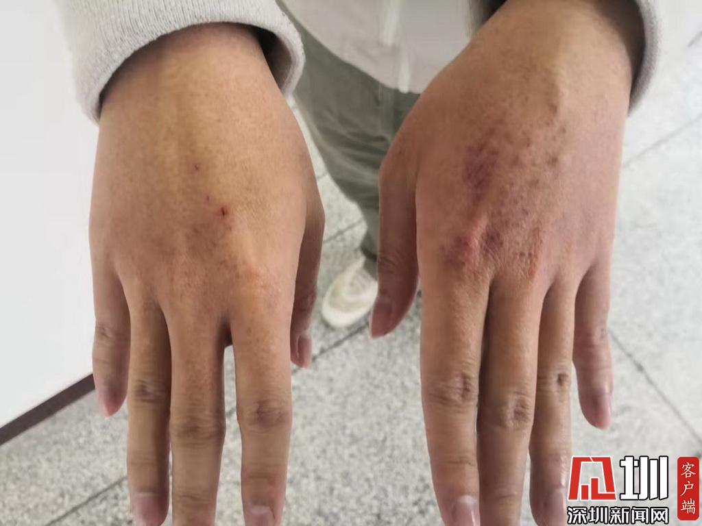 反復手消毒和長期戴手套后,傷痕累累的手。