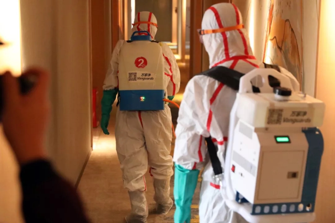▲疾控人員對(duì)病人逗留過的場(chǎng)所進(jìn)行終末消毒
