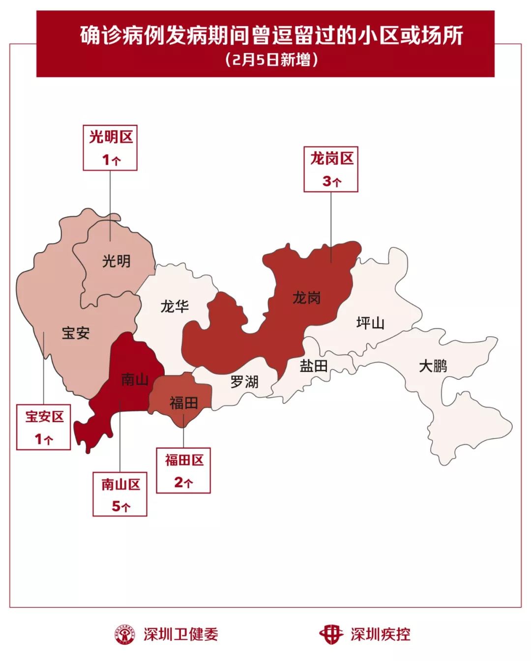 2月5日,疾控專(zhuān)業(yè)人員通過(guò)最新的流行病學(xué)調(diào)查確認(rèn),深圳新增12個(gè)小區(qū)(場(chǎng)所),有新確診的病人在出現(xiàn)病征期間曾經(jīng)逗留。