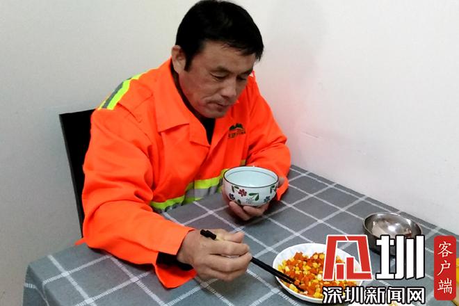 胡蘿卜丁炒玉米,再加一碟土豆絲下飯,這就是黃學志的午餐。黃學志說,他有幾年沒回老家了,本來計劃春節(jié)回去過年,順便帶老伴看病,沒想到疫情越來越嚴重,于是就打消了這個念頭。疫情發(fā)生以來,除了日常工作,他還要負責為值班同事普及疫情防控知識的任務。從早上7點半到12點半,下午1點半到5點半,他每天在沙頭角7個垃圾轉(zhuǎn)運站、18個公廁來回奔走,給同事配送口罩及消毒用品,檢查他們的身體健康情況?!艾F(xiàn)在是疫情防控關(guān)鍵期,我們也希望為防控工作貢獻出來自環(huán)衛(wèi)清潔行業(yè)的一份力量?!秉S學志說。(見圳客戶端、深圳新聞網(wǎng)記者鄧雪婷)
