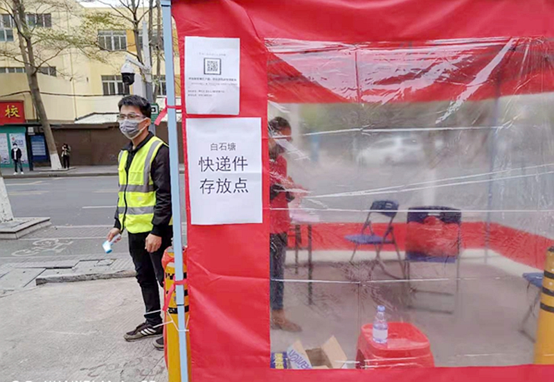 根據(jù)防控疫情的需要,坪地街道要求各社區(qū)在77個城中村、物業(yè)小區(qū)內(nèi),按照既方便群眾又無防控風(fēng)險的原則,選定1-3個快遞、外賣集中收取點,并有專人看守,讓快遞員通知收件人下樓自取,對居家隔離人員由工作人員送至其門口,不能讓快遞員走樓入戶,防止交叉感染。集中收取點各社區(qū)可因地制宜,可以考慮圍合卡口的治安崗?fù)ぁ⒕用裥〗M辦公樓等區(qū)域。