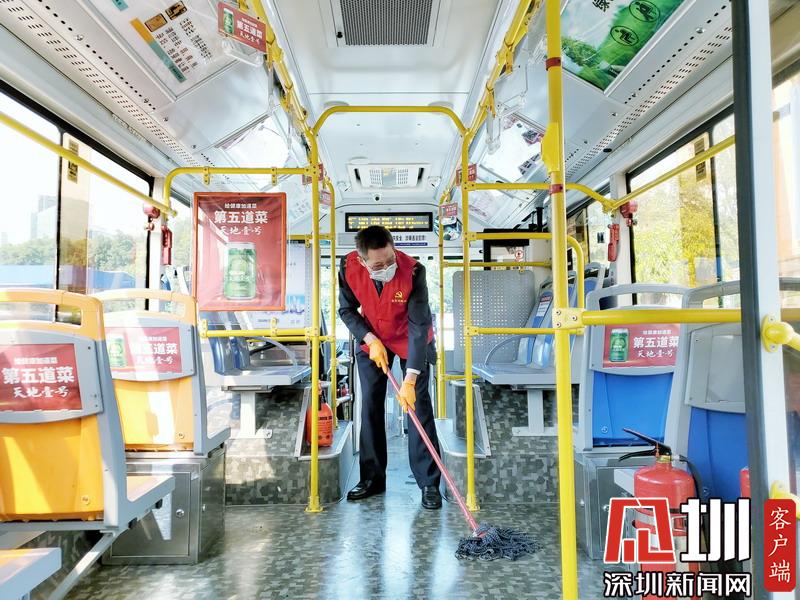 深圳巴士集團(tuán)四分公司工作人員對(duì)公交車(chē)進(jìn)行消毒擦洗。