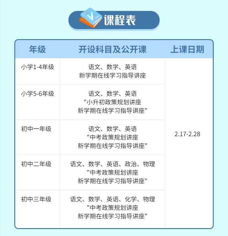 據(jù)悉,本次公益校內(nèi)同步直播課程涵蓋各年級(jí)(1-9年級(jí)),各學(xué)科(語(yǔ)文、數(shù)學(xué)、英語(yǔ)、政治、物理、化學(xué)等)?!案采w廣、課程精、師資強(qiáng)、服務(wù)優(yōu)、全免費(fèi)”是本次直播課程的特色亮點(diǎn)。