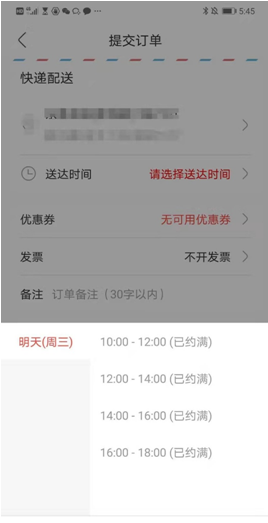 下單時(shí)間:每日0點(diǎn)、8點(diǎn)開放訂單預(yù)約。運(yùn)力緊張,需提前搶購,此外,盒馬部分區(qū)域門店暫只可預(yù)約當(dāng)日配送服務(wù),若當(dāng)日配送服務(wù)已約滿,會顯示“配送小哥已約滿,歡迎門店選購”。