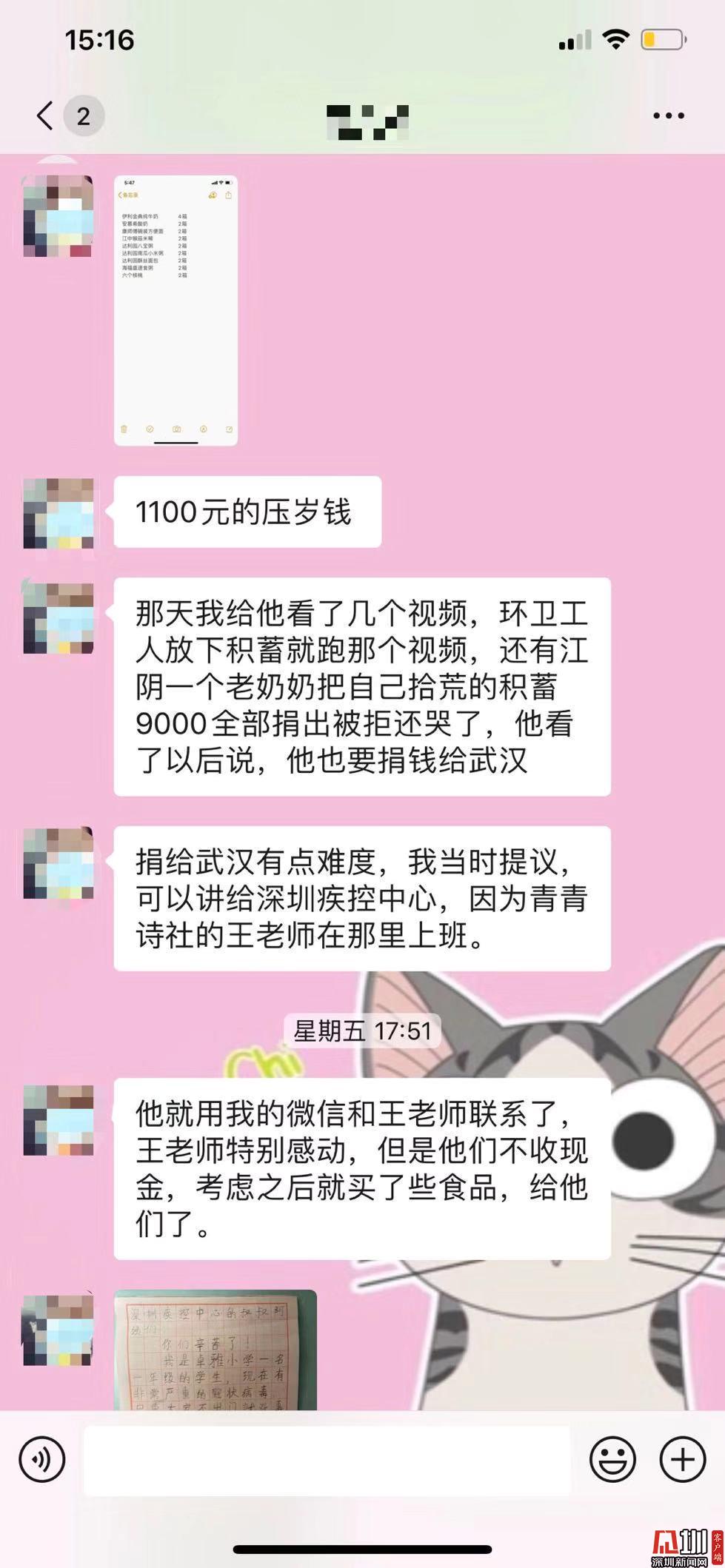 在肆虐的疫情面前,一名7歲的小男孩不惜動(dòng)用了今年的全部壓歲錢1100元,購(gòu)買食品捐贈(zèng)給深圳市疾病預(yù)防控制中心。