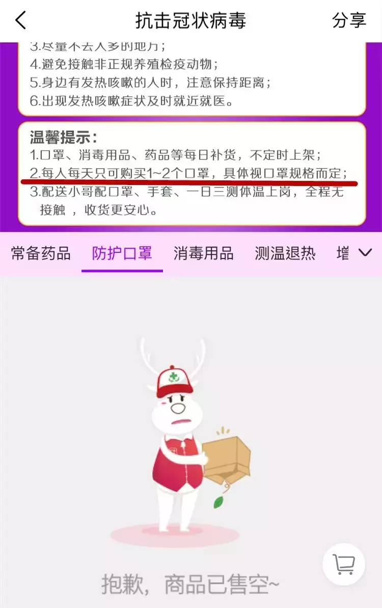 記者了解到,叮當(dāng)快藥全程采取線上下單、線下無接觸配送的模式?;?jīng)理進(jìn)一步解釋道,為了保障消費(fèi)者與員工安全,配送員會(huì)全程佩戴護(hù)目鏡、頭盔、手套及口罩,送到門衛(wèi)或者小區(qū)樓下,讓消費(fèi)者自取。所以小編提醒,為了安全,大家千萬不要去門店排隊(duì)購(gòu)買哦!接下來叮當(dāng)快藥從海外:美國(guó)、韓國(guó)、俄羅斯等地購(gòu)買的口罩還會(huì)陸續(xù)到貨及上線。
