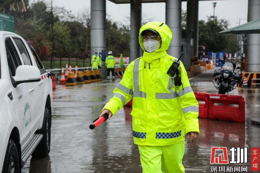 暴雨來臨,深圳交警民警在檢疫點安裝雨棚。