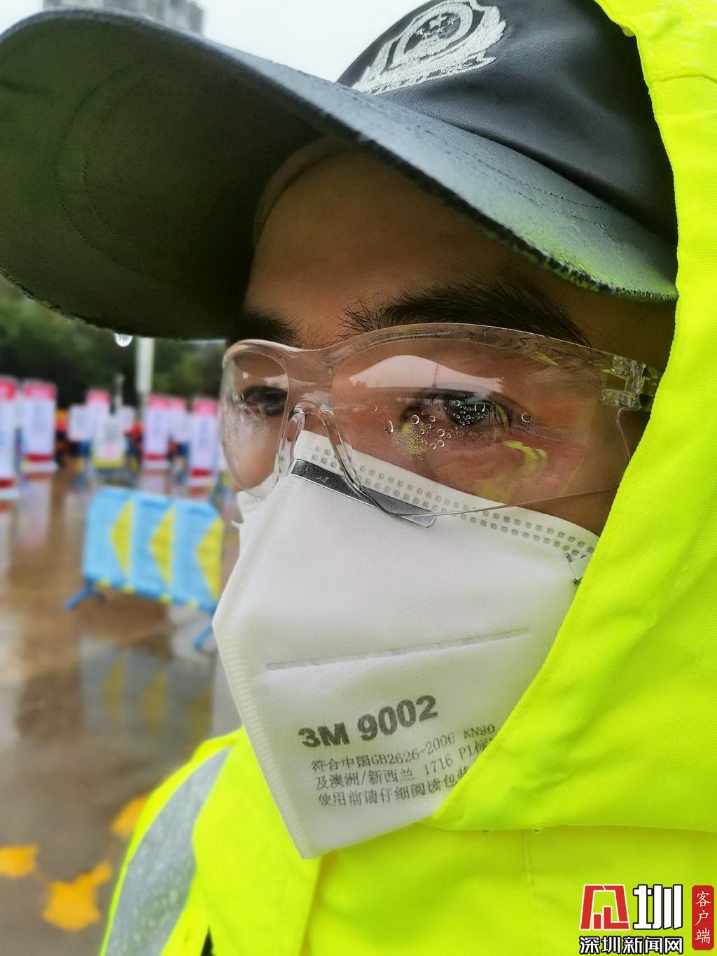 受天氣影響,執(zhí)勤民警的護目鏡布滿霧氣。