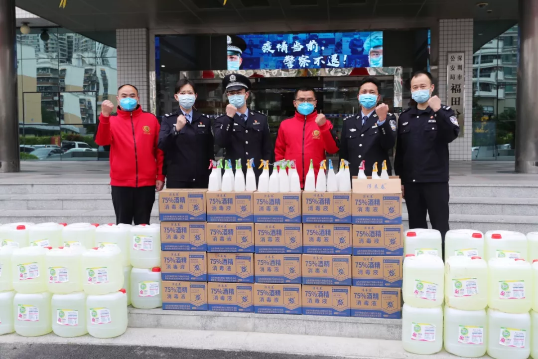 當(dāng)天16時許,愛心企業(yè)代表肖先生帶著50桶20公斤消毒液、480瓶消毒酒精、20個噴壺來到了福田分局,捐贈給了福田警方。福田分局黨委委員、政治處主任桂禮強代表分局接收捐贈抗疫物資,并對愛心企業(yè)表示感謝。
