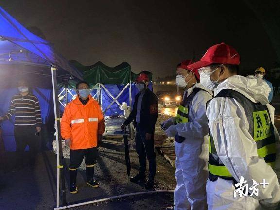 坪地街道黨工委書(shū)記曾憲旺冒雨夜巡檢查點(diǎn),了解當(dāng)日車(chē)流量以及重點(diǎn)區(qū)域人員返深情況,同時(shí)慰問(wèn)一線執(zhí)勤人員及志愿者。