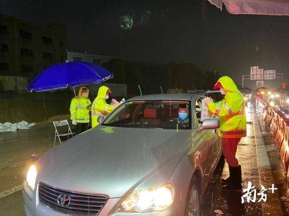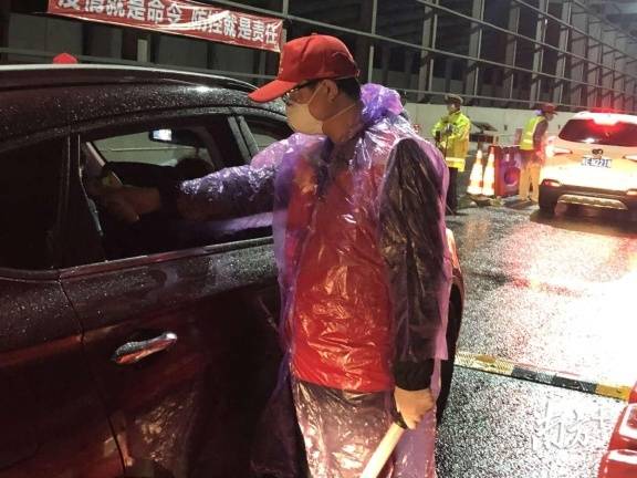 龍城街道黨員干部、工作人員與龍崗區(qū)退役軍人義工隊、龍崗交警組成防控隊伍,借助現(xiàn)場高速雨棚的遮擋,對進(jìn)深車輛一一進(jìn)行排查。