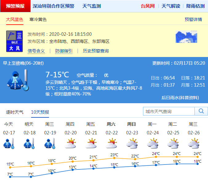 見圳客戶端·深圳新聞網2020年2月17日訊 受寒潮影響,16日深圳氣溫驟降,白天氣溫維持在10~13 ℃之間波動,較15日氣溫下降10 ℃左右。據(jù)市氣象臺消息,寒冷天氣還將持續(xù)3天,其中18日氣溫進一步下降,最低溫在7 ℃左右。