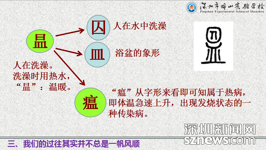 坪山實驗學校校長安國強校通過“說文解字”的形式生動講解了“瘟”與“疫”的字義,讓大朋友和小朋友們都理解了瘟疫爆發(fā)時的可怕性與嚴重性。他還從歷史的角度讓同學們了解人類與自然災(zāi)害斗爭的過往。