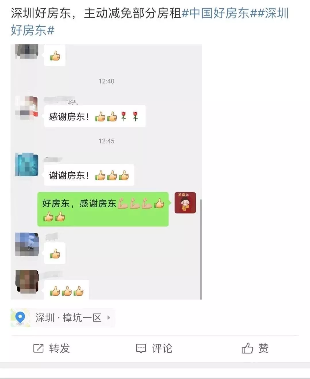 C******a:我有一位龍崗朋友是房東,他們給所有租客都減免了半個(gè)月的房租。暖心感動(dòng)!