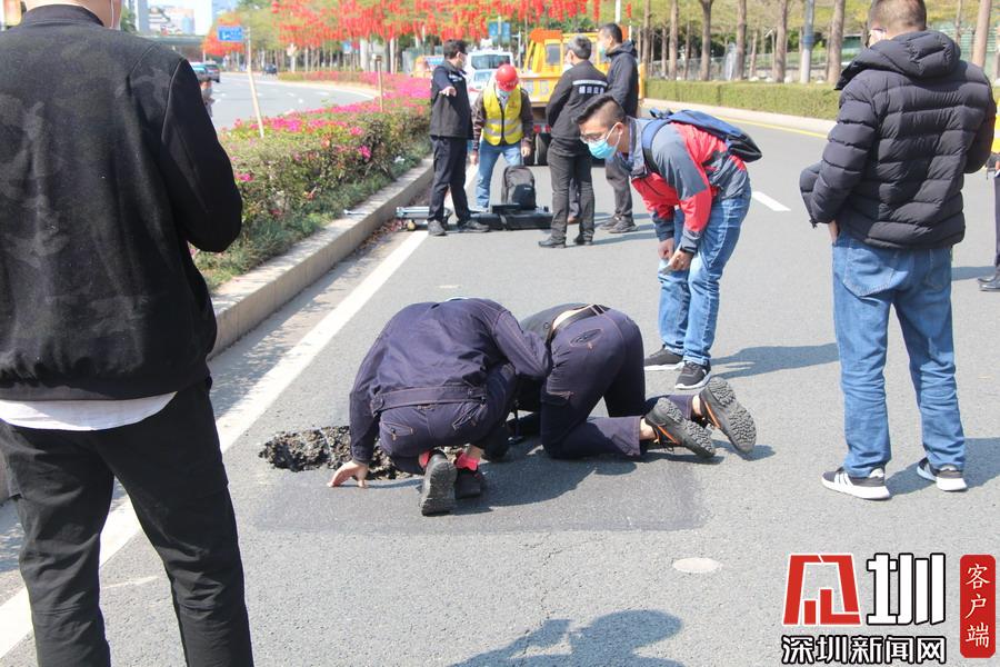 2020年2月18日9點(diǎn)40分,市交通運(yùn)輸局福田管理局養(yǎng)護(hù)巡查發(fā)現(xiàn)深南大道西行輔道市民廣場(chǎng)門口路段出現(xiàn)路面塌陷,塌陷空洞面積約5~6㎡,深度約1.5~2.0米。我局第一時(shí)間上報(bào)區(qū)地防辦并趕赴現(xiàn)場(chǎng)做好安全圍擋工作,確保車輛和市民出行安全。同時(shí),區(qū)地防辦牽頭我局、交警、水務(wù)、地鐵等部門進(jìn)行現(xiàn)場(chǎng)勘察,查找地陷原因。經(jīng)勘察,該處位于地鐵2號(hào)線上方,周邊地下管道完好,該輔道路段約有40~50米路基土疏松,塌陷原因是該路段地下工程施工對(duì)地基擾動(dòng)且回填土未夯實(shí)。