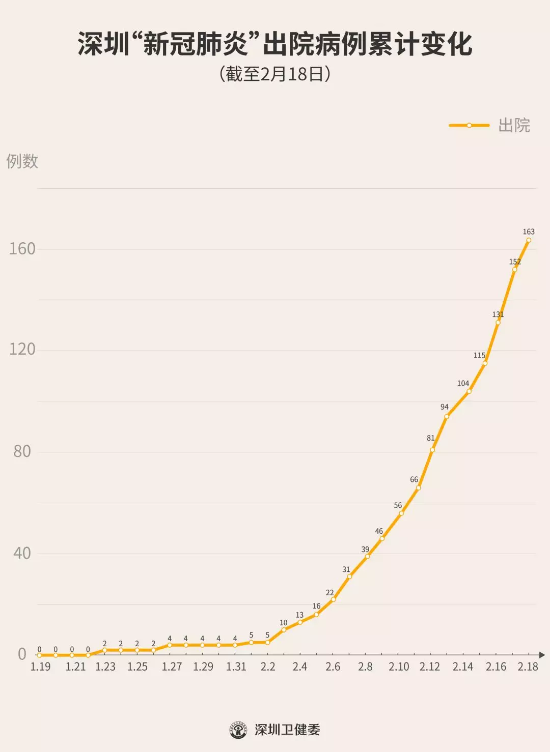 2月18日下午,經(jīng)專(zhuān)家組會(huì)診,深圳再有11名新型冠狀病毒肺炎確診患者出院,累計(jì)達(dá)163人,連續(xù)16天有人出院。