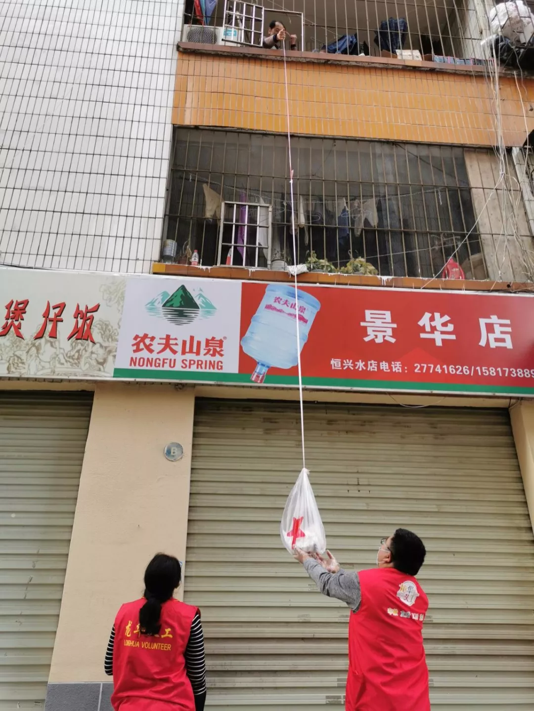 “為了實(shí)現(xiàn)無接觸配送,每天阿姨會把繩索放下來,她會電話告訴我們需要的菜品和生活用品,我們把她需要的東西都‘送’上去”。趙發(fā)威日常除了服務(wù)社區(qū)弱勢群體購買生活必需品,還承擔(dān)機(jī)動(dòng)崗為需要替崗的志愿者“愛心接力”、執(zhí)行社區(qū)抗疫檢測點(diǎn)的測溫登記工作。