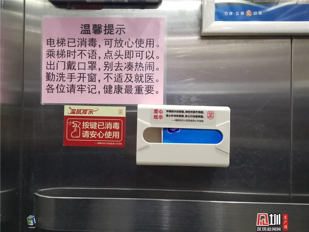 除了落實(shí)“五個(gè)100%”、“十個(gè)一律”等社區(qū)聯(lián)防聯(lián)控硬核舉措外,福田區(qū)安心行動(dòng)細(xì)微之處見真章,工作人員模擬小區(qū)居民,從出家門開始到小區(qū)門口,所必經(jīng)的區(qū)域進(jìn)行實(shí)地感受,督促配合物業(yè)對(duì)小區(qū)防火門、電梯內(nèi)外、樓道、樓梯扶手、大門把手、公共座椅等公用設(shè)施每日消毒并公示記錄,電梯間統(tǒng)一設(shè)置按鍵公用紙及紙巾回收處等一些小細(xì)節(jié),讓居民能看見實(shí)實(shí)在在的防疫措施而感到放心、安心。