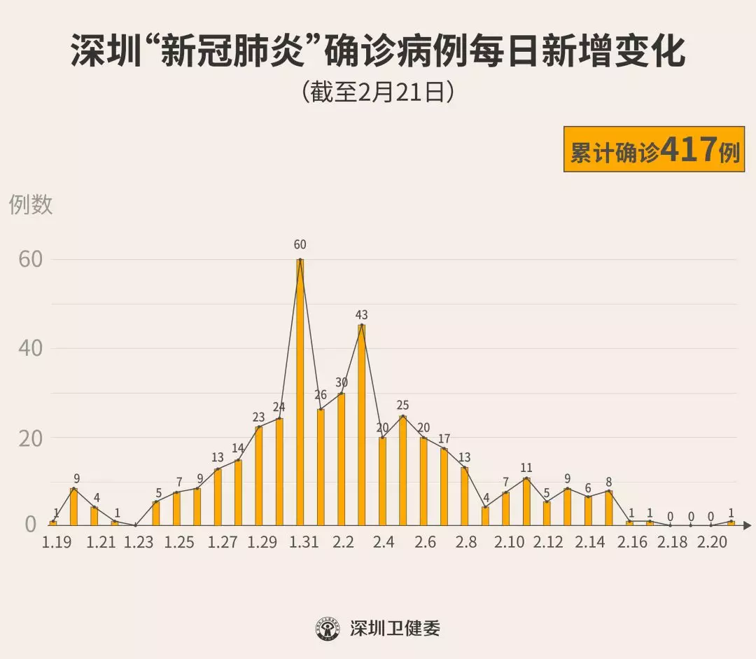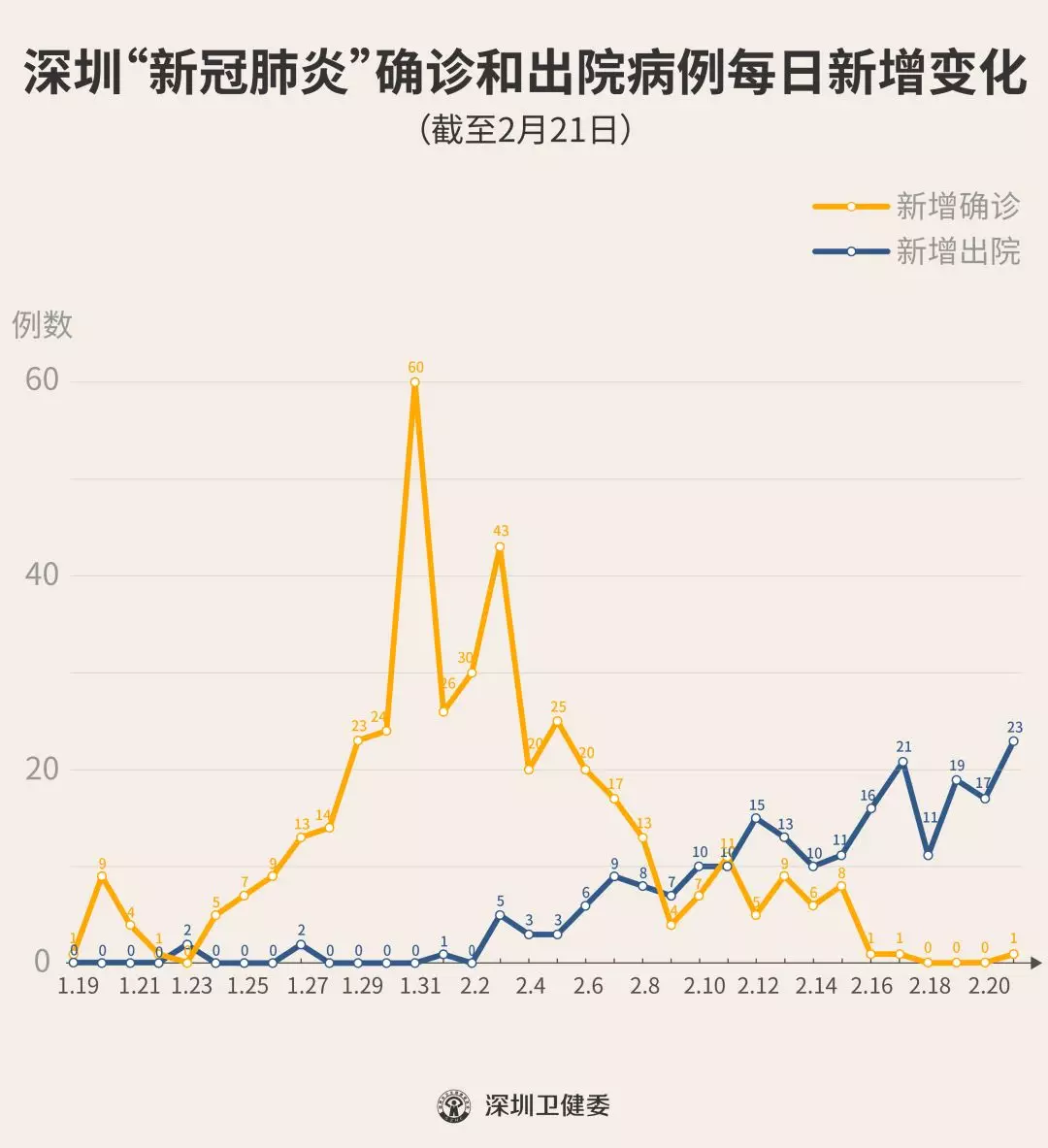 截至2月21日24時(shí),深圳累計(jì)報(bào)告“新冠肺炎”確診病例417例。2月21日當(dāng)天全市新增確診病例1例(個(gè)案詳情今晚公布)。 ▲新增出院病例已超過(guò)新增確診病例 累計(jì)報(bào)告確診病例中,男性197例、女性220例。 按照病例管理地區(qū)劃分,南山區(qū)87例、福田區(qū)81例、龍崗區(qū)71例、寶安區(qū)62例、龍華區(qū)34例、羅湖區(qū)32例、光明區(qū)11例、坪山區(qū)7例、鹽田區(qū)6例、大鵬新區(qū)2例、其他(指由機(jī)場(chǎng)、車(chē)站、碼頭、關(guān)口、路卡等直接送往定點(diǎn)醫(yī)院的)24例。 目前,重癥10例、危重癥9例,死亡2例,累計(jì)出院222例。 193例確診病例均在深圳市第三人民醫(yī)院隔離治療。 202例密切接觸者正在接受醫(yī)學(xué)觀察。 資料來(lái)源:深圳市疾控中心、深圳市衛(wèi)健委、廣東省衛(wèi)健委
