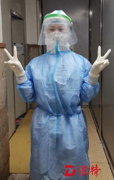 在忙碌之余,3位隊(duì)員也收獲了一份感動(dòng)。原來(lái),因?yàn)樗齻兌荚诜雷o(hù)服外面寫上了“廣東”和自己的名字,所以一進(jìn)入隔離病房后,就有患者向她們道謝:謝謝廣東的支援,你們辛苦了!“那一瞬間真的感覺(jué)很暖心,很感動(dòng)?!?/p>