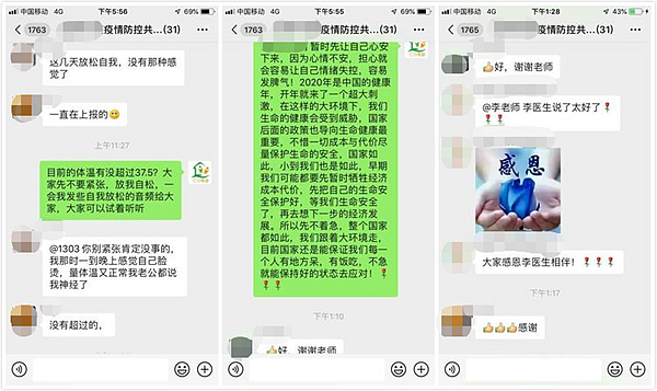 據(jù)介紹,心理服務(wù)小組根據(jù)不同服務(wù)對(duì)象,靈活提供多樣化的可及性心理服務(wù),包括家庭團(tuán)體心理服務(wù)、一對(duì)一個(gè)案咨詢、線上課堂、線上答疑等,具體服務(wù)內(nèi)容有:為確診冠狀病毒感染的病人及家屬提供線上一對(duì)一心理咨詢及家庭團(tuán)體心理服務(wù);關(guān)注社區(qū)一線的工作人員,為“三位一體”工作群、網(wǎng)格員工作群、醫(yī)護(hù)人員工作群、黨群干部工作群等一線工作人員提供“安心防疫心理手冊(cè)”線上課堂,視頻講解“安心”防疫工作;為工作強(qiáng)度大、情緒壓力大的一線人員開(kāi)展線上減壓團(tuán)體活動(dòng)及個(gè)體咨詢服務(wù);在專(zhuān)業(yè)的精神衛(wèi)生專(zhuān)家的指導(dǎo)下,聯(lián)合各社區(qū)的精訪社工,為社區(qū)有精神疾病的病人及家屬提供線上心理復(fù)康指導(dǎo)及心理咨詢服務(wù);開(kāi)通三條心理服務(wù)熱線,為居家隔離的人群提供線上電話咨詢服務(wù)及微信群線上答疑及文字咨詢活動(dòng)。