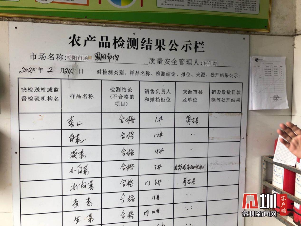 “朝陽肉菜市場從2005年開始開辦,市場占地面積為2480平方米,建筑面積和經(jīng)營面積均為2220平方米,目前市場經(jīng)營攤檔共有82檔。市場附近有三個社區(qū),每天有將近兩萬居民都會來這個市場采購食材。市場設(shè)有農(nóng)殘檢測設(shè)施,每天都會對進貨的蔬菜進行農(nóng)殘檢測并公示?!笔袌鲐撠熑苏f道。