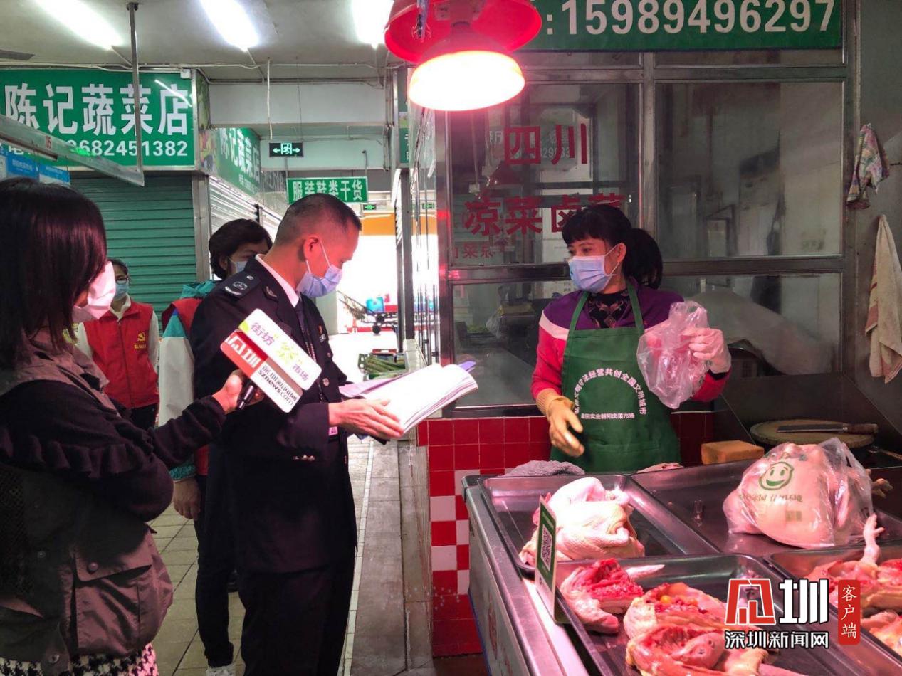 深圳市市場監(jiān)管局鹽田所執(zhí)法人員藍華榮表示,朝陽肉菜市場是從年初二開始營業(yè)的,鹽田所從年初二開始,每天都會對這個市場進行檢查。目前除了日常檢查之外,還會對市場的防疫防控工作進行檢查?!耙咔槠陂g主要檢查市場是否有售賣野味和商戶是否有佩戴口罩,當?shù)谝淮伟l(fā)現(xiàn)商戶沒有戴口罩時,執(zhí)法人員會發(fā)放一份責令改正通知書給商戶,第二次還被發(fā)現(xiàn)沒有戴口罩的話,市監(jiān)部門將通知公安部門?!眻?zhí)法人員介紹道。