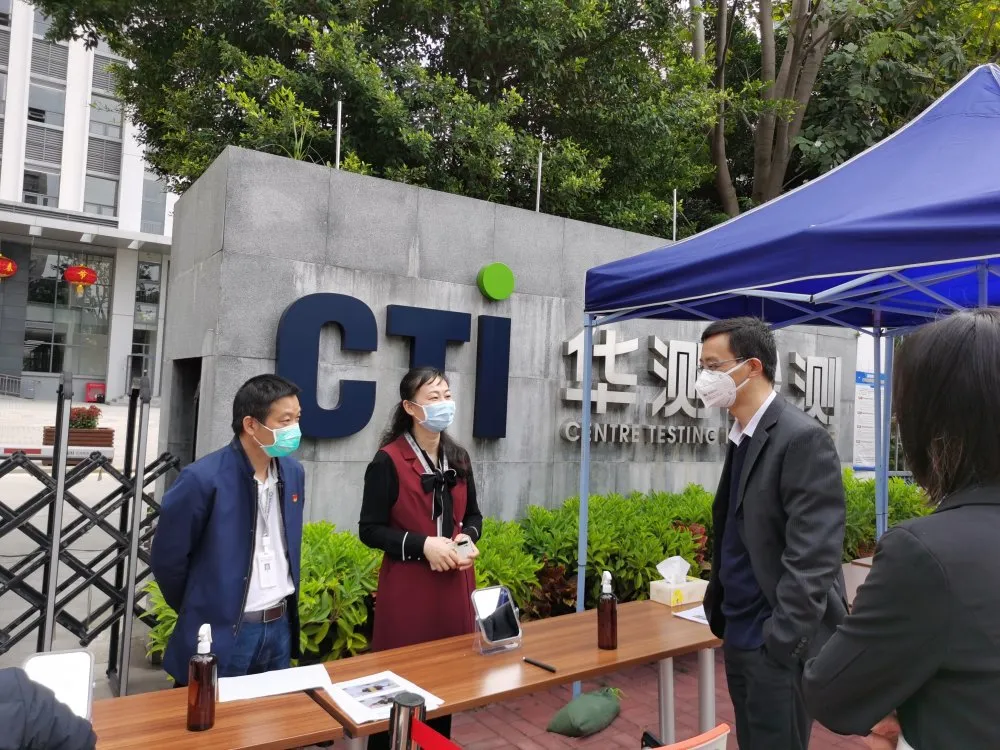 隨后,集團社康管理中心負責(zé)人和興東社康醫(yī)務(wù)人員到社區(qū)內(nèi)的重點企業(yè)——華測檢測認證集團股份有限公司,開展復(fù)工復(fù)產(chǎn)防疫工作,指導(dǎo)管理人員學(xué)習(xí)如何正確戴口罩、洗手、測體溫,口罩回收注意事項、如何避免登記人員信息時感染等等。