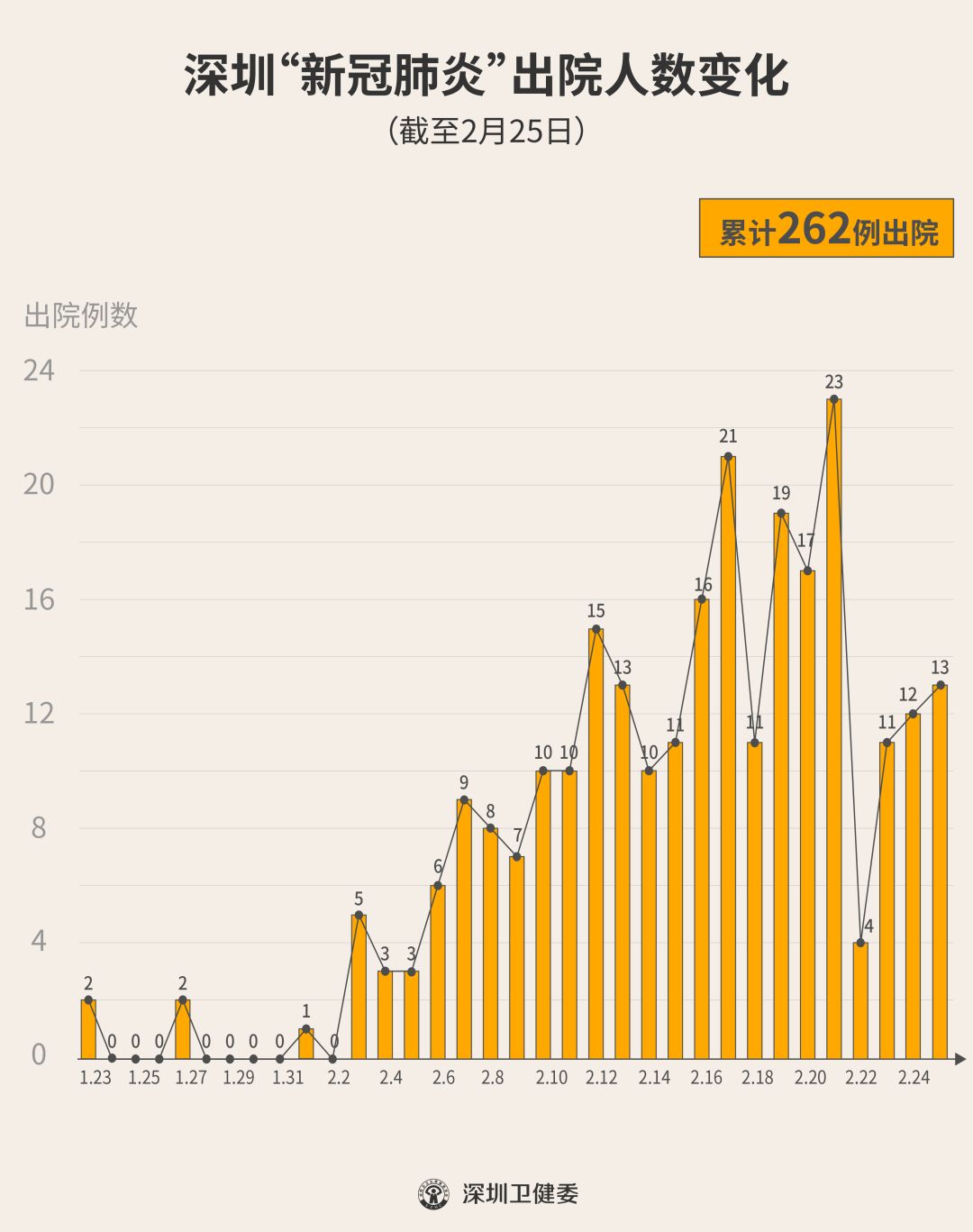 2月25日下午,經(jīng)專家組會診,深圳有13名新型冠狀病毒肺炎確診患者出院,累計達262人,連續(xù)23天有人出院。