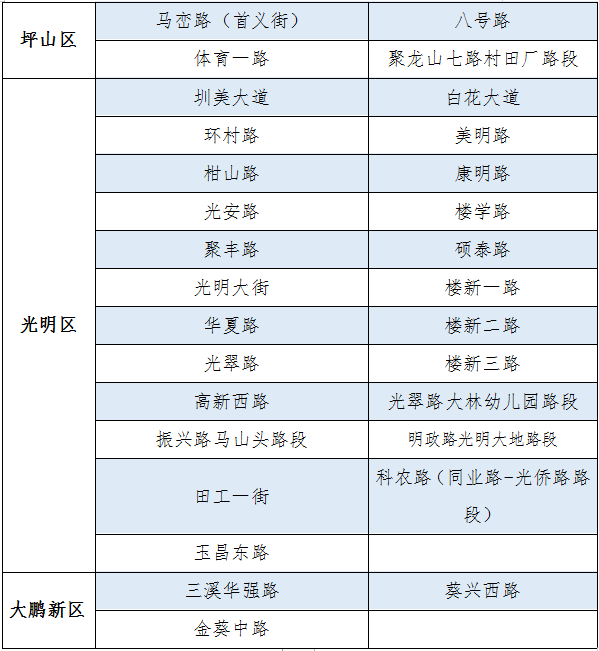 經(jīng)綜合考慮,深圳交警決定撤銷(xiāo)上述三個(gè)車(chē)輛臨時(shí)停放路段,截至2020年3月6日,深圳交警共在全市170條路段,做為疫情期間道路臨時(shí)停車(chē)區(qū),具體設(shè)置路段請(qǐng)看表格。