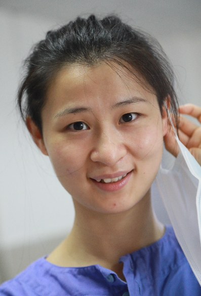 連日的工作,緊張又忙碌,同事?lián)耐跹沛蒙眢w吃不消,勸她去休息,她總是擺擺手,連聲說:“沒事兒,大家放心?!惫ぷ鲿r的王雅婷非常細致,絲毫不敢怠慢。面對患者,她總是用耐心溫柔的話語與他們溝通,認真服務每個人。小小的她總能讓患者感到溫暖,大家都對她贊不絕口,夸她為身邊的人注入了滿滿的能量。工作雖然辛苦,但看到患者的情況一天天好轉,王雅婷覺得“再辛苦再累也是值得的”。