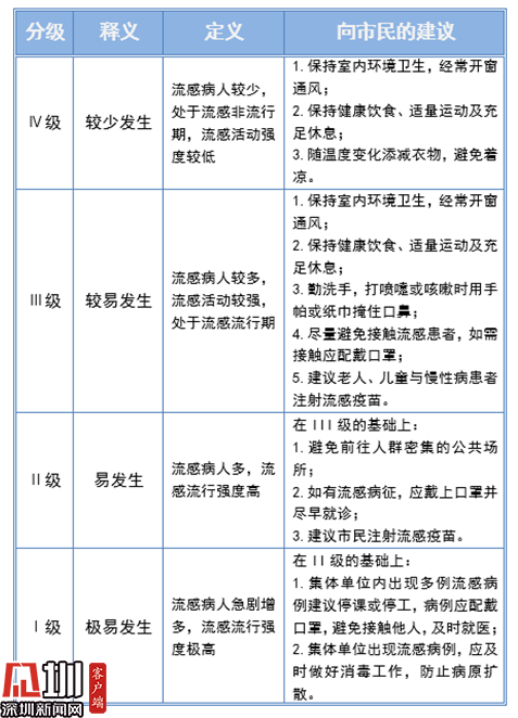 根據(jù)深圳市疾控中心發(fā)布的流感指數(shù)應(yīng)對指引,市民應(yīng)保持室內(nèi)環(huán)境衛(wèi)生,經(jīng)常開窗通風(fēng);保持健康飲食、適量運(yùn)動及充足休息;勤洗手,打噴嚏或咳嗽時用手帕或紙巾掩住口鼻;盡量避免接觸流感患者,如需接觸應(yīng)配戴口罩;建議老人、兒童與慢性病患者注射流感疫苗。