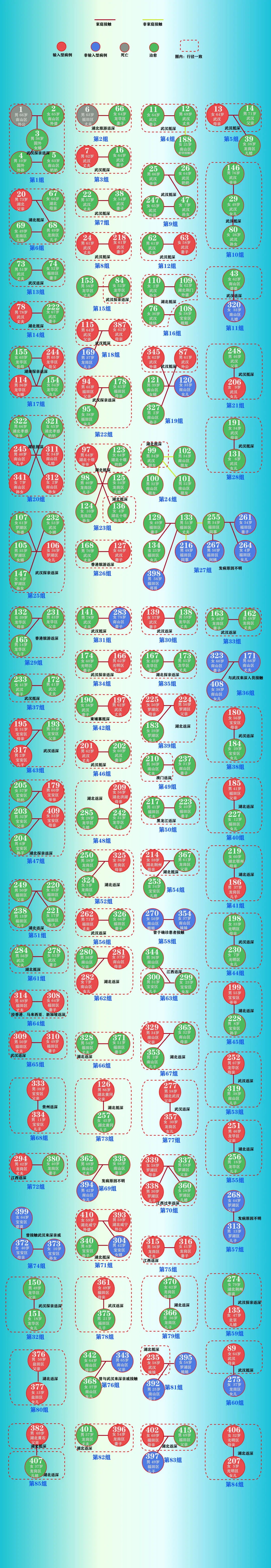 ▲多數(shù)聚集性病例以家庭聚集為主,共涉及85組病例,單個家庭確診2至3人,最多的一個家庭確診7人??梢姡诨鶎由鐓^(qū)防疫力度較強的情況下,疫情擴散風險較小。但是,家庭防疫存在諸多困難,親屬間傳染風險極大。