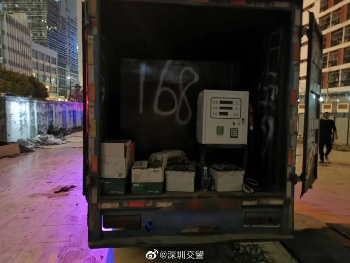 深圳交警到達(dá)現(xiàn)場時,司機與相關(guān)人員都不在場,而附近居民向現(xiàn)場民警透露,這輛車的車廂內(nèi)可“大有乾坤”,出于安全考慮,交警打開該車車廂。