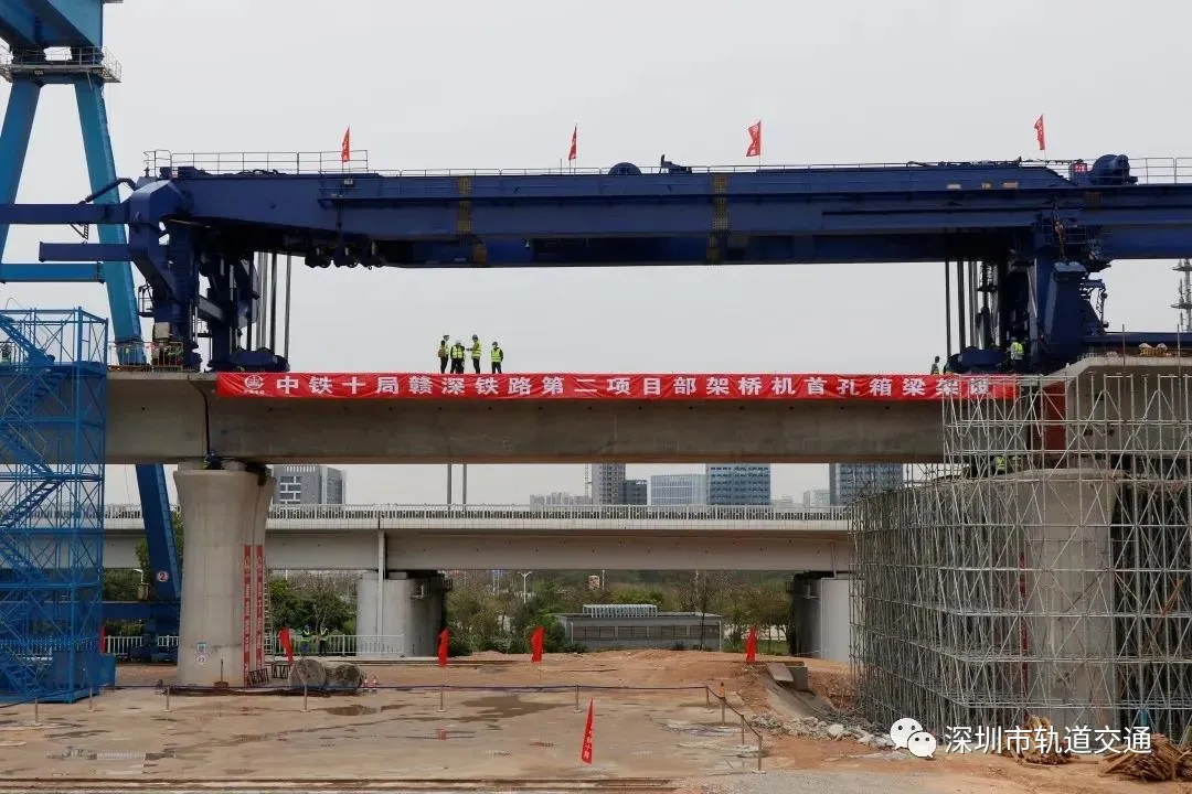 贛深鐵路10標使用架橋機架設首榀箱梁圓滿完成