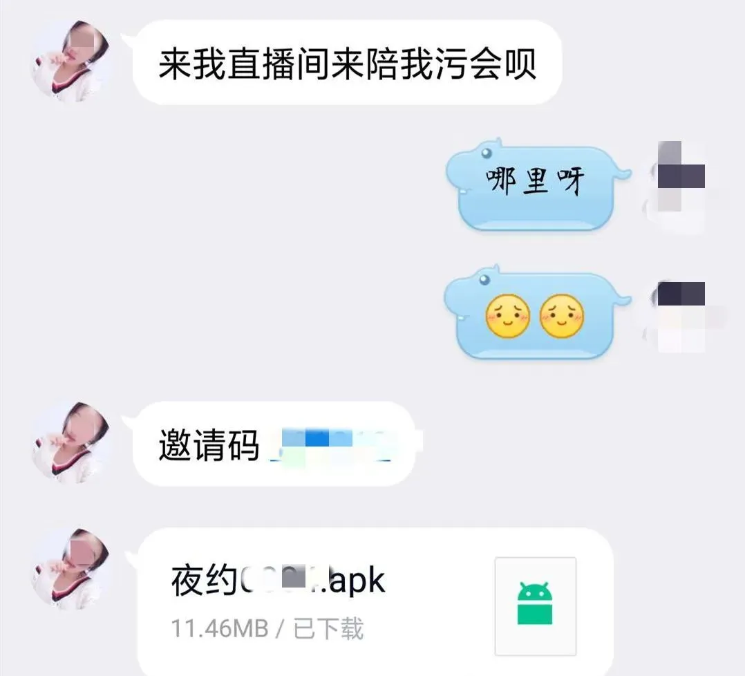 美女直入正題,邀請陳先生安裝一款名為“夜約”的直播軟件,許諾只要在直播間點(diǎn)贊,就可以一對一視頻裸聊。