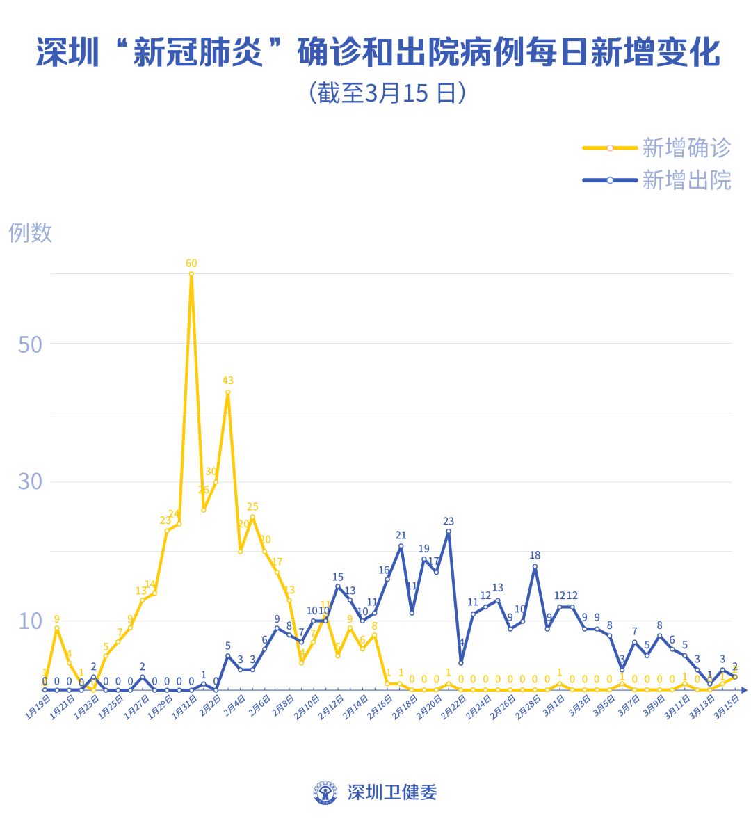 自2月22日以來,深圳共新增6例新冠肺炎病例,全部為境外輸入。 其中3月14日、15日共新增3例。