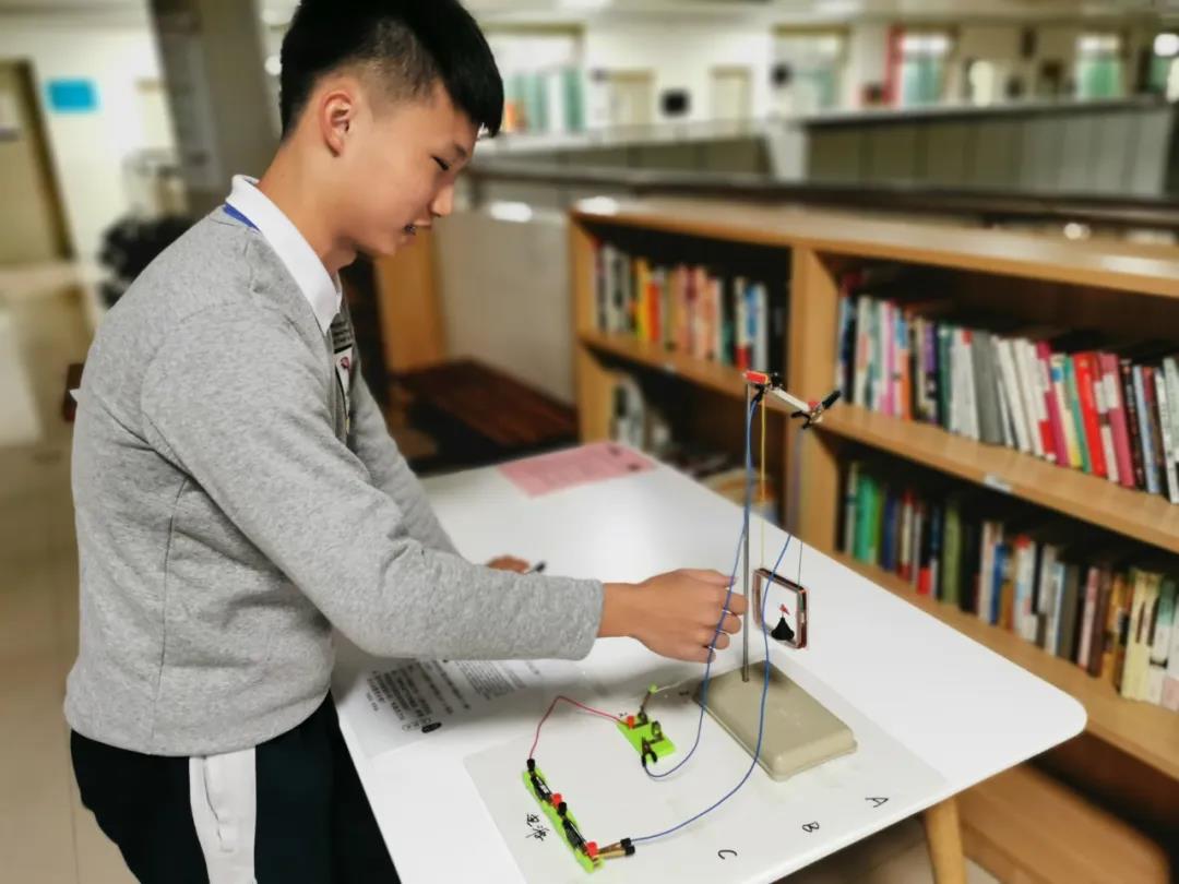 據(jù)黃老師介紹,二實這個《課題》,目標是將經(jīng)典習題教學和實驗創(chuàng)新聯(lián)姻,讓兩者相得益彰,讓習題教學成為培養(yǎng)科學思維和實踐意識的主陣地之一,提高學生的學習興趣和效果。“聽話的繩子”“新桃園三結(jié)義”“比比哪本書更大”“銅管中的時空隧道”“千人震”......這些都是該課題的物理實驗的創(chuàng)新做法。二實物理老師們把這些實驗名稱叫做“胖問題”,目的在于通過形象化提高同學們實驗探究的興趣,其對應的物理核心考點“瘦問題”分別是:“力的平行四邊形定則”“平拋運動的分解”“繩桿關(guān)聯(lián)速度”“銅管中的電磁感應”“自感現(xiàn)象”等。