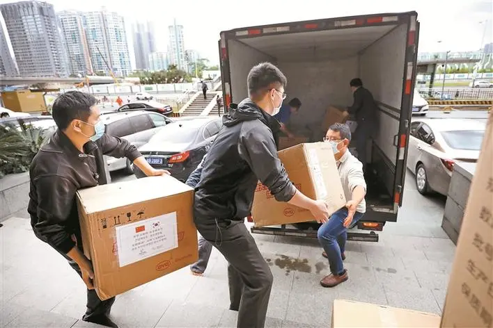 3月18日15時(shí),位于福田區(qū)深南中路的NEO大廈B座一層,一批即將寄往韓國(guó)仁川、光陽、釜山三座城市的防疫物資已經(jīng)集結(jié)完畢。深圳市國(guó)際交流合作基金會(huì)的工作人員正緊鑼密鼓地準(zhǔn)備著,1個(gè)小時(shí)后,這批近500公斤的一次性口罩將被裝車運(yùn)往機(jī)場(chǎng)。