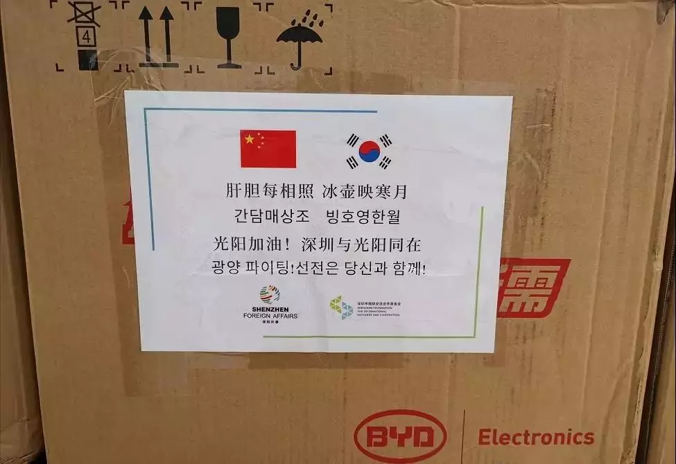 作為深圳的國(guó)際友好城市,就在一個(gè)月前,仁川、光陽、釜山在深圳最需要的時(shí)候,陸續(xù)捐贈(zèng)了數(shù)萬只口罩,數(shù)千副護(hù)目鏡和大量醫(yī)用防護(hù)服等防疫物資。